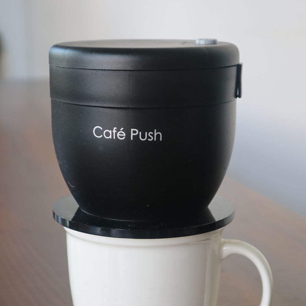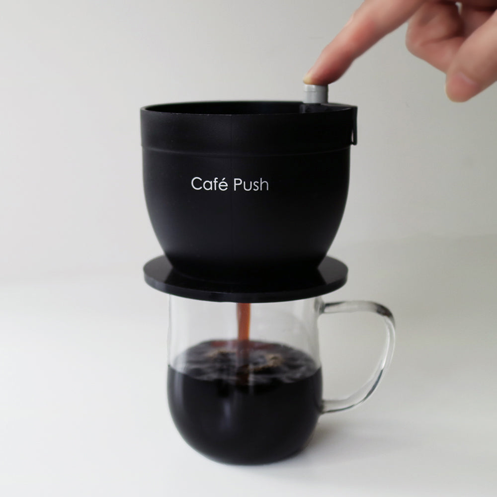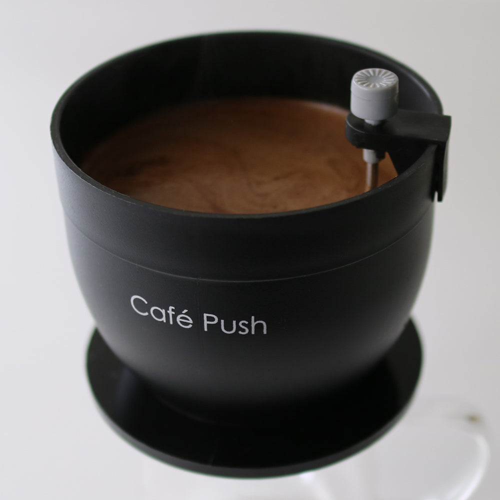お好みのタイミングでボタンをプッシュ。ペーパーフィルターでは出せない、コーヒーの油分(=甘み)をしっかり抽出できます。