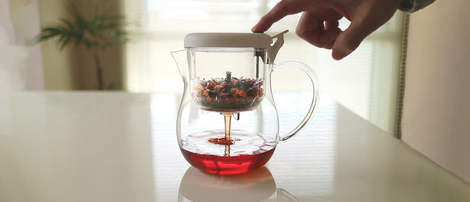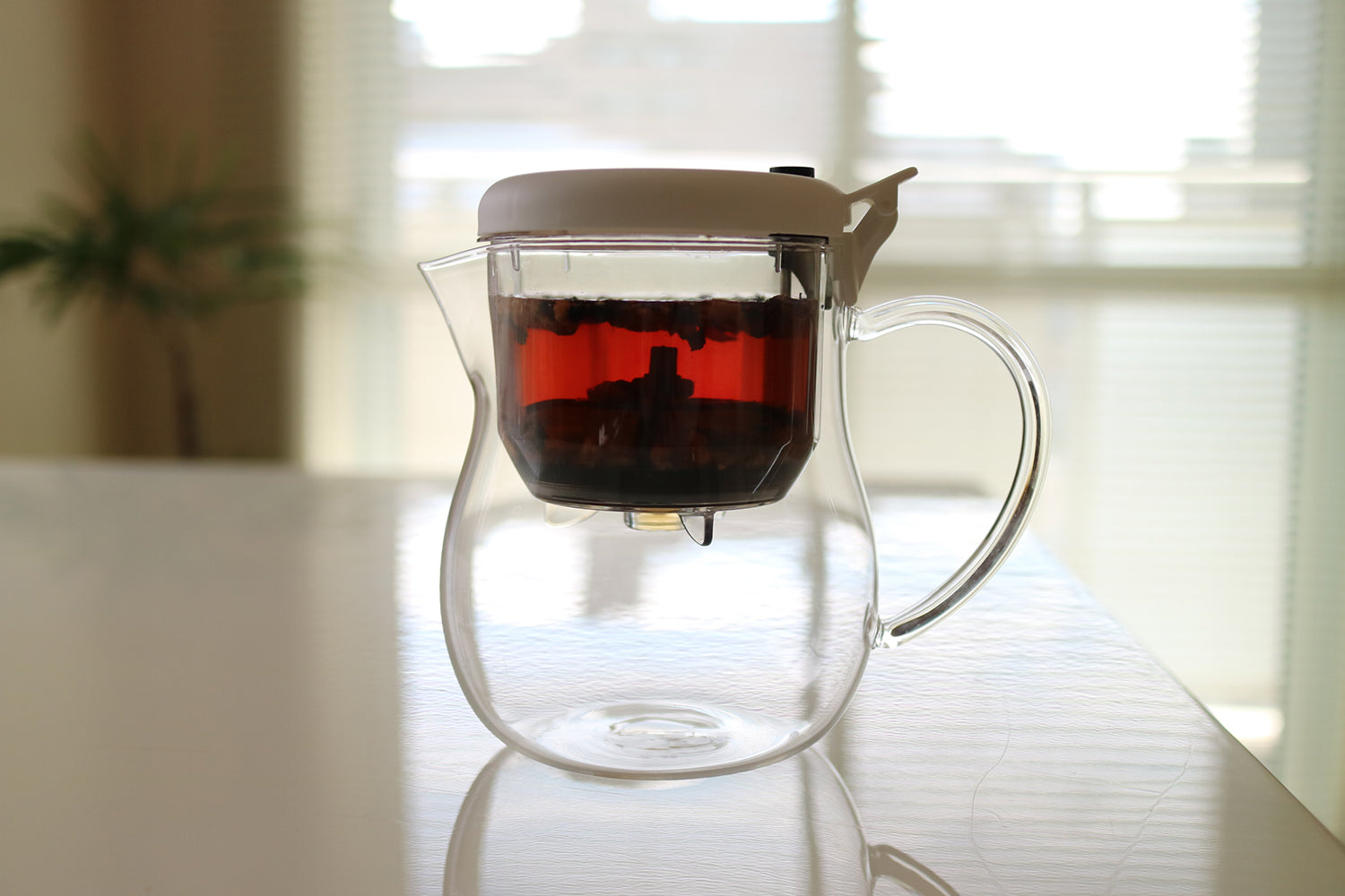 お好みの濃さでワンプッシュ。しっかりお湯が切れるので茶葉がお湯にひたりっぱなしにならず、二煎目・三煎目もおいしくいただけます。