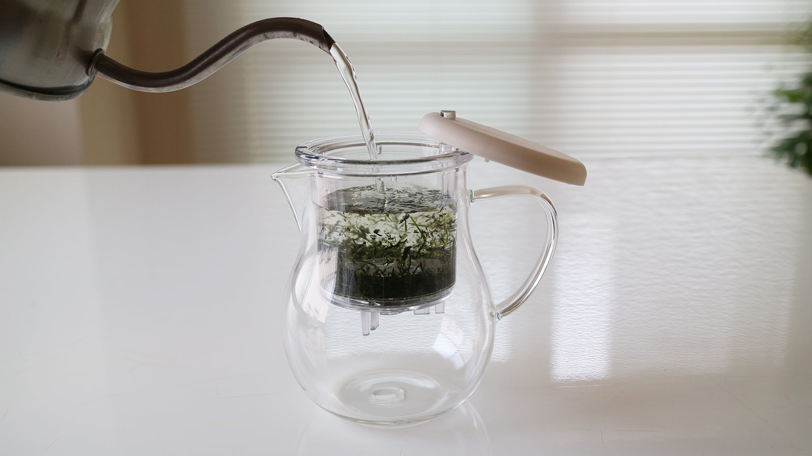 お好みのタイミングでワンプッシュ。しっかりお湯が切れるのでお茶が渋くならず、二煎目・三煎目もおいしくいただけます。
